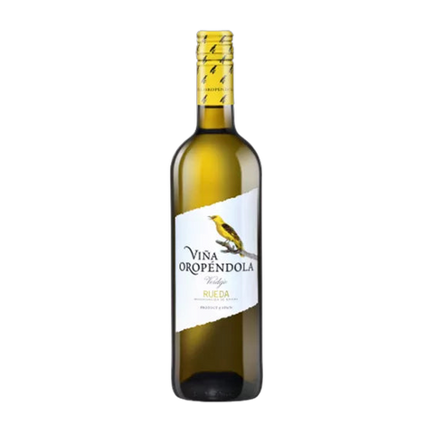 Eh bien, ce résultat est une source de fierté ! Quel fantastique verre de vin blanc que ce Viña Oropéndola ! Sur l'étiquette, on peut apercevoir un magnifique oiseau. Cet oiseau s'appelle Oropéndola, ou Loriot d'or. Un oiseau énergique, joyeux et frais. Tout comme ce vin blanc. Il n'est donc pas surprenant que ce vin de la région de Rueda porte le nom de Loriot d'or. La robe du Viña Oropéndola, tout comme l'oiseau, est d'un magnifique jaune doré. Au nez, on perçoit des notes légèrement exotiques de mangue et de kiwi, de fruit de la passion et de cire à parquet : puissantes et intenses, agréables avec une touche herbacée. Ce Vina Oropéndola Verdejo Rueda a une saveur puissante et sèche, avec une bonne acidité et une amertume délicate, du pamplemousse et une belle longueur. Sa finale douce rend ce vin incroyablement agréable.Détails du produit